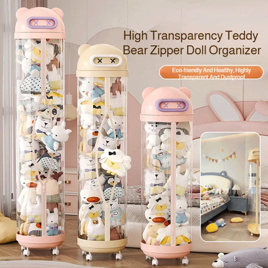 Large Transparent Toy Storage Bucket with Wheels – Kids’ Plush Organizer