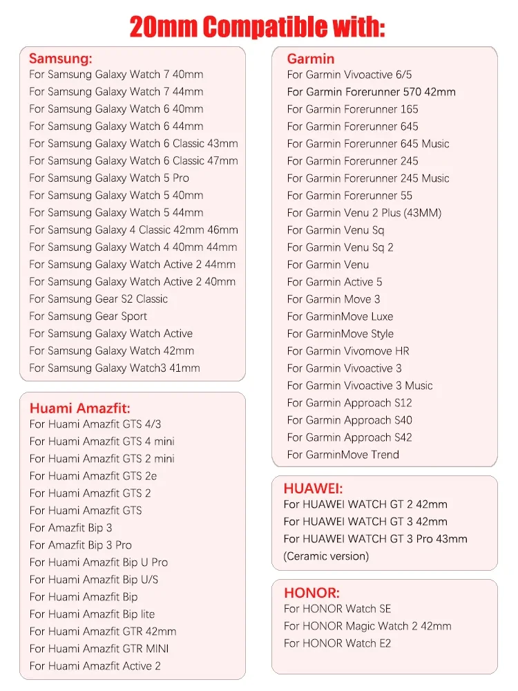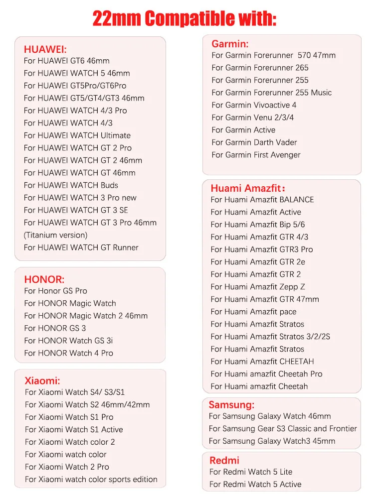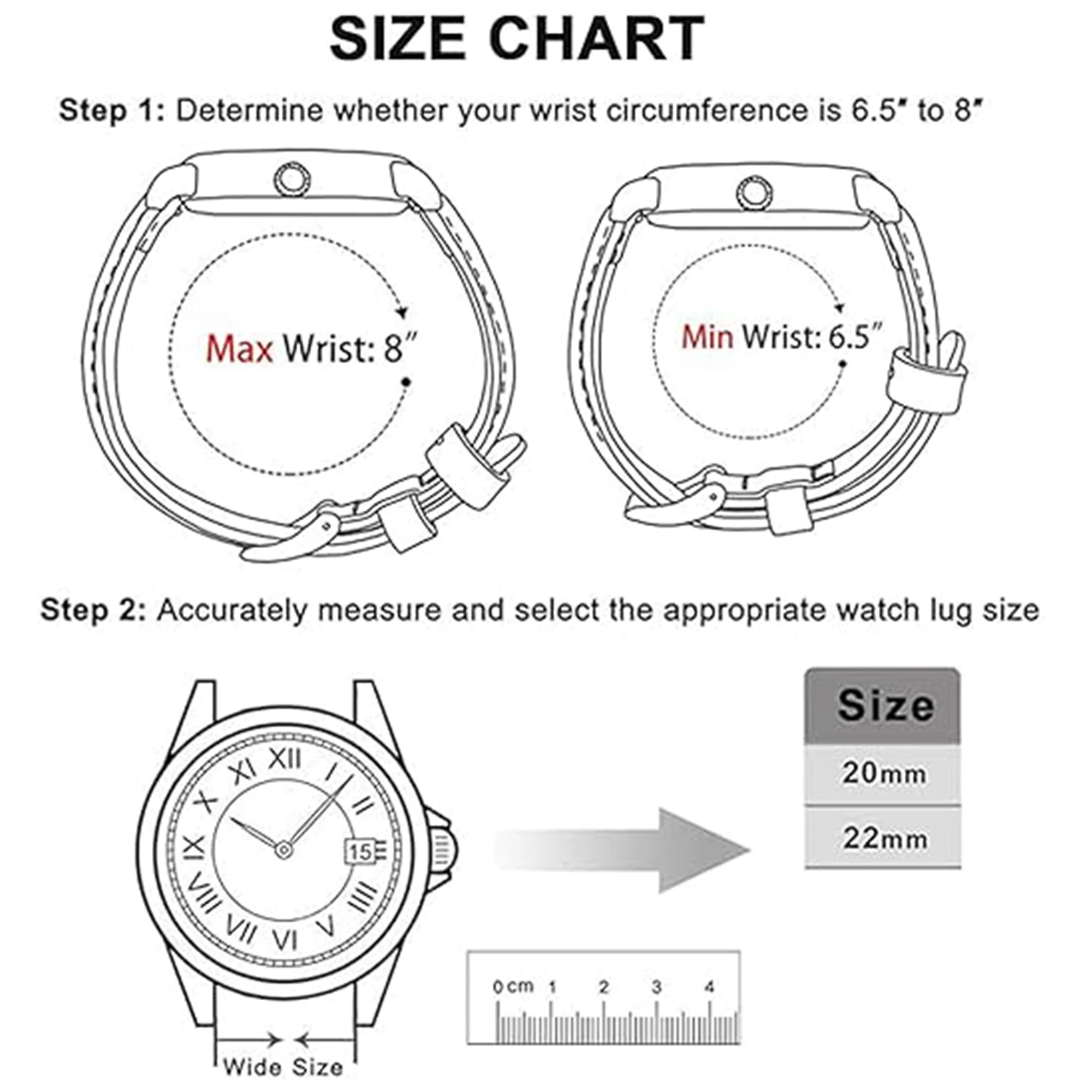 This product comes in two sizes: 22mm and 20mm. If you are unsure about the size of the watch, you can choose the size based on the following models